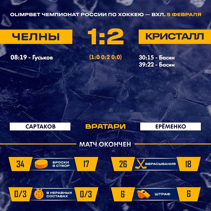 ХК «Челны» — «Кристалл» 1:2 (1:0 0:2 0:0)