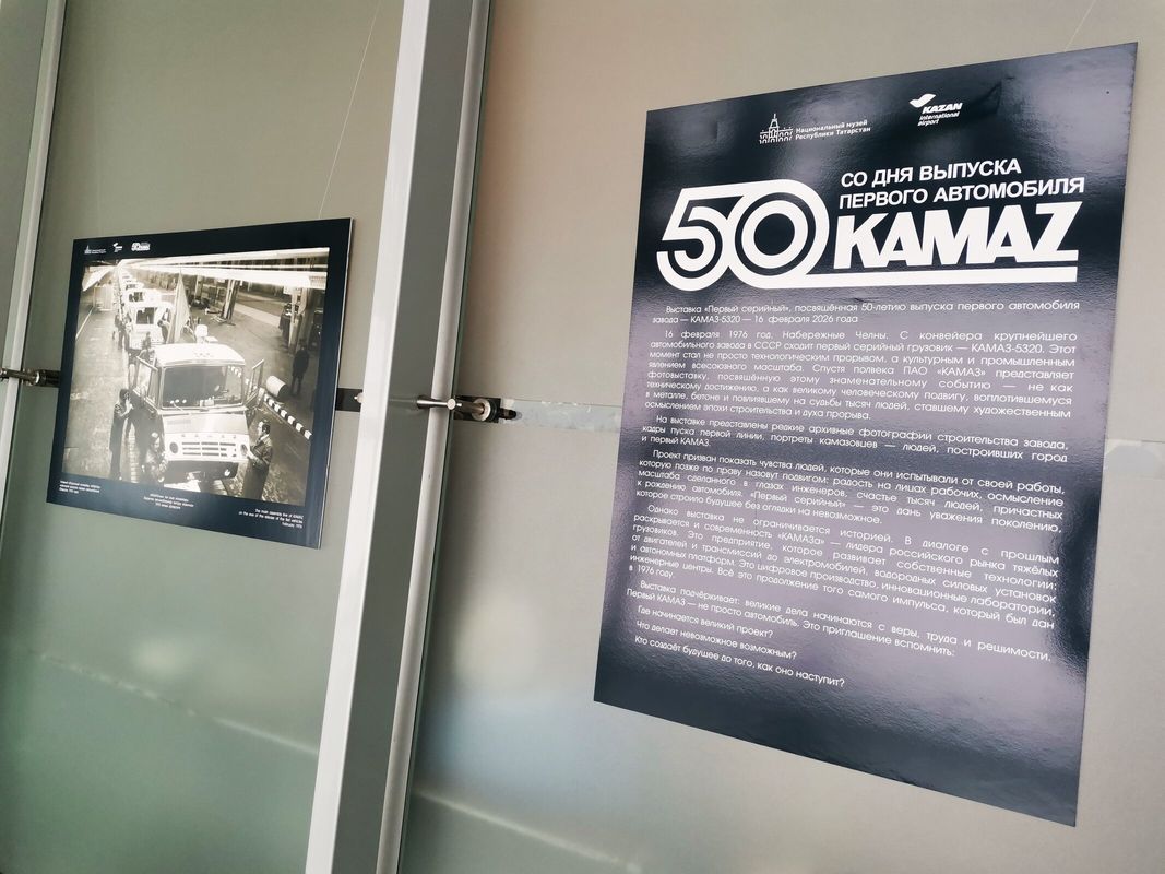 В Международном аэропорту Казань" открылась фотовыставка, посвящённая 50‑летию со дня выпуска первого автомобиля КАМАЗ. Выставка размещена в галерее терминала 1А до конца марта.